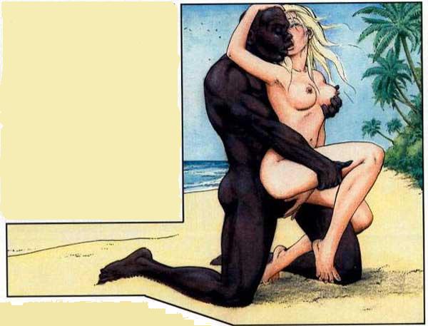 Ее глаза округлились от удивления, когда она увидела огромную черную дубинку, которую они скрывали. Теперь настала очередь Мартина получить удовольствие. Положив ее ноги себе на плечи он начал массировать своей красной головкой вход во влагалище, давая понять, что ее сейчас ждет и когда он вошел она чуть не задохнулась от удовольствие. Такого громадного члена в ней не было еще ни разу. Приподнявшись, она смотрела как в нее входит скользкий от смазки черный поршень и входит не полностью, пока… видимо Мартин боялся ее травмировать. Через пол часа она уже потеряла счет времени и оргазмам, которые следовали один за другим. Находясь на грани реальности она почувствовала, как член негра, начал осторожно протискиваться в ее анус, она уже была готова и с удовольствием приняла его. Сюда Мартин мог войти на всю длину и при каждом проникновении она чувствовала его яйца, которые хлопали ей по попке. Ее стоны не прекращались, а желание с каждым новым оргазмом все усиливалось. В очередной раз Мартин вышел из нее и вместо ануса вошел во влагалище, потом снова вышел и снова вернулся в анус, так он делал до тех пор, пока голос Елены уже совсем не охрип от стонов. Тогда он остановился и спокойно спросил:
